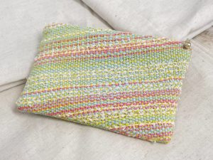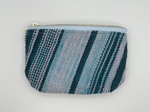 さをり織りの生地を使った、ぺたんこタイプのポーチ。