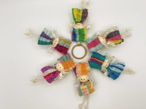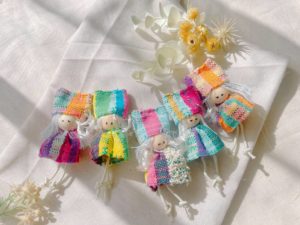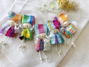 さをり織りの生地で作った、手のひらサイズの「キリちゃんキーホルダー」。