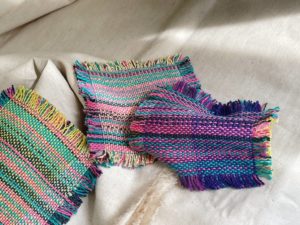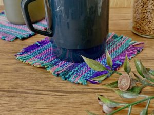 さをり織りで丁寧に仕立てた、リバーシブルタイプのコースターです。